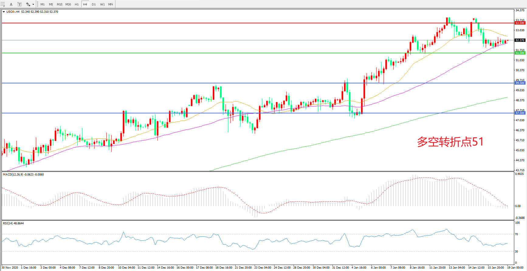 多空转折点:51.50