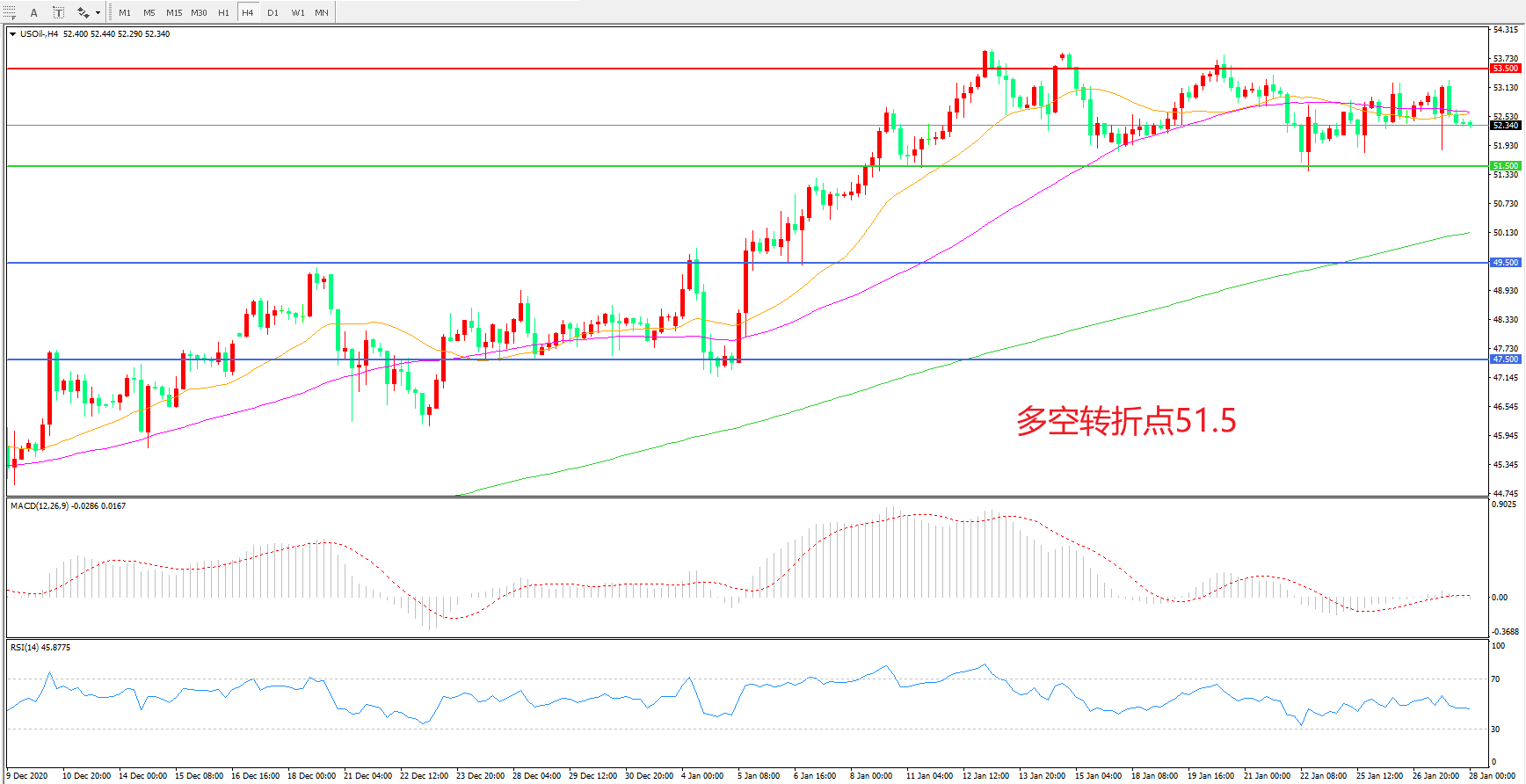 交易策略:在51.50之上看涨,目标53.50    57.00