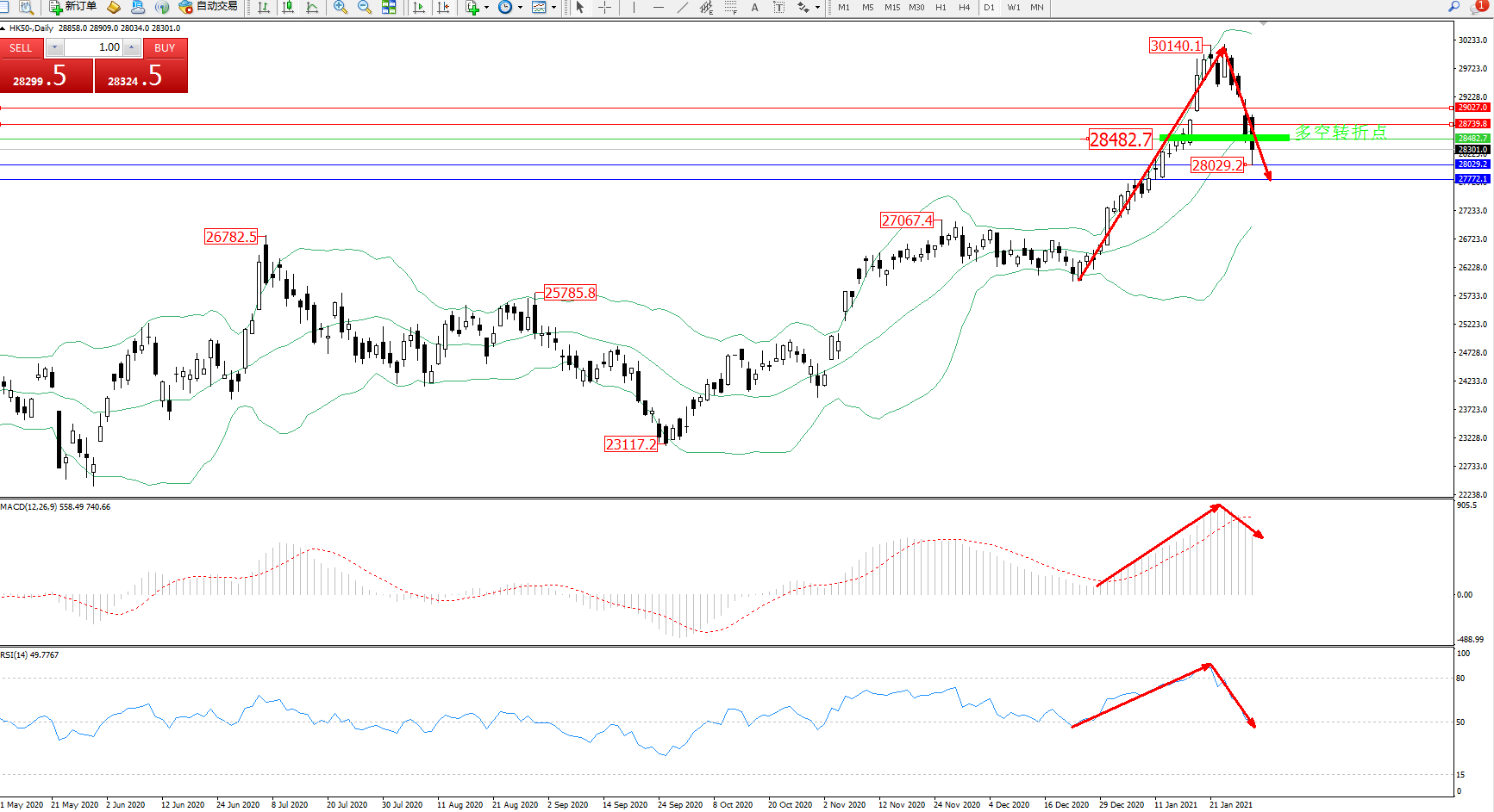 恒指HK50 ——日K线图显示: