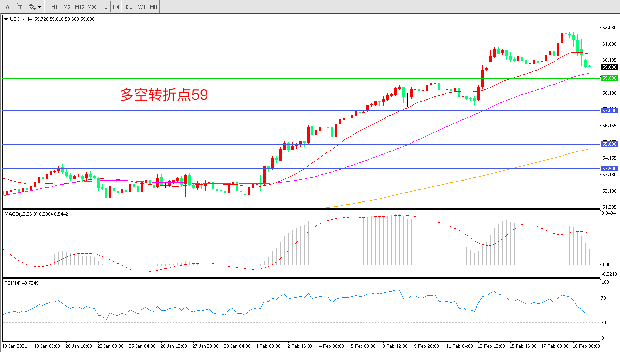 交易策略:在59.00之上看涨,目标62.00    65.00