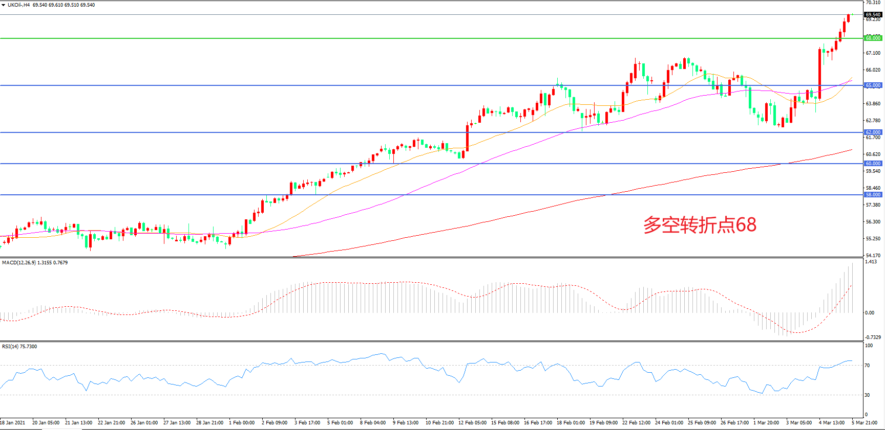 多空转折点:68.00