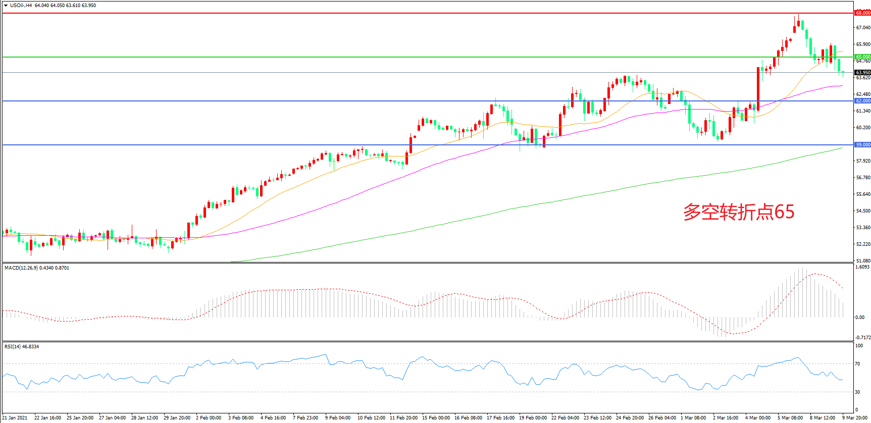 多空转折点:65.00