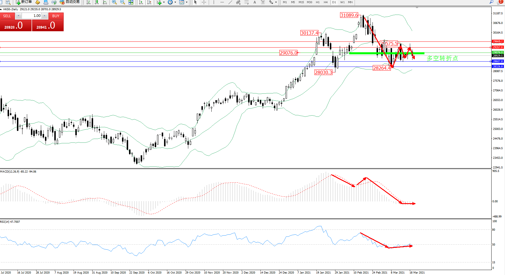 恒指HK50 ——日K线图显示: