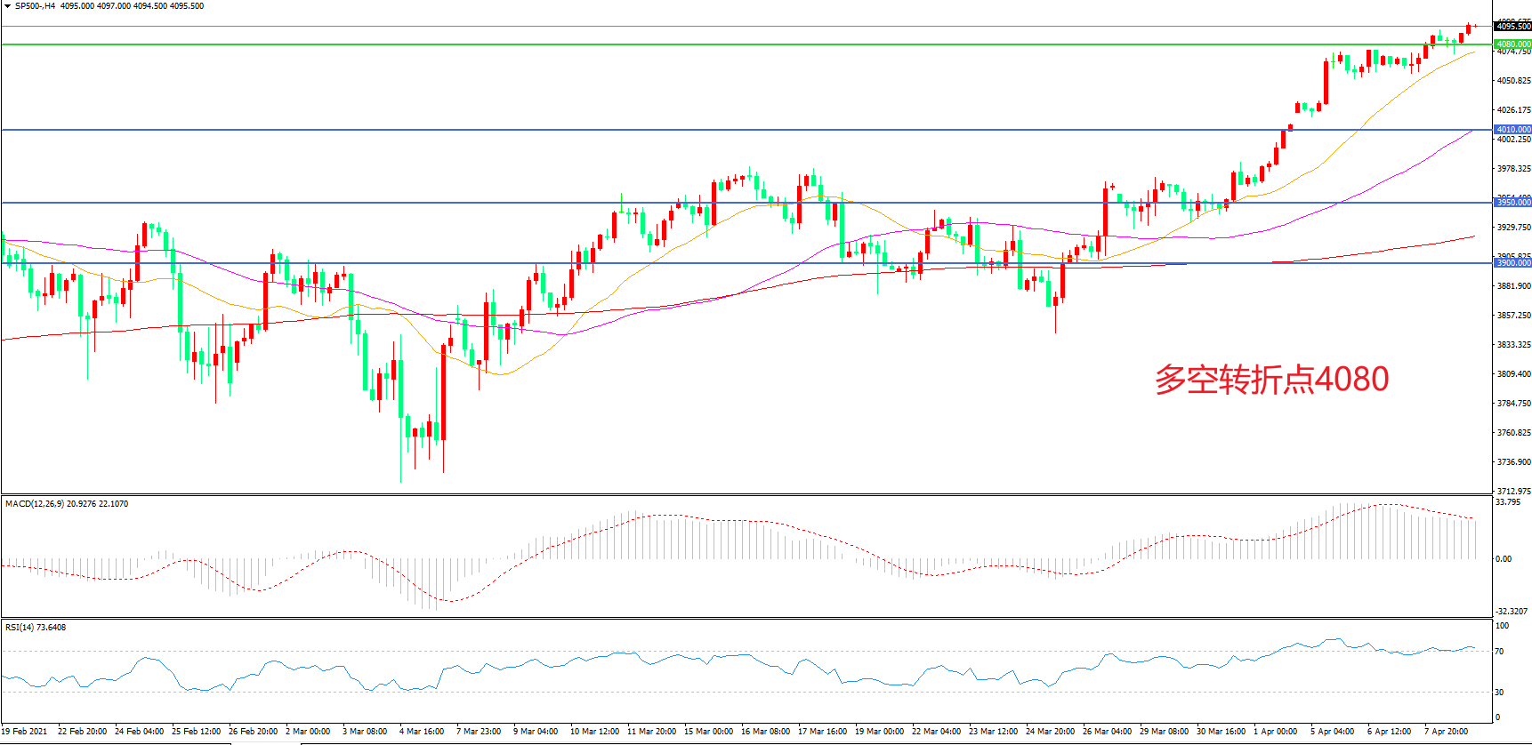 周四(48日),虽然美国首次申请失业救济人数意外不降反增,但美联储再次释放宽松信号,美联储主席鲍威尔重申联储保持支持经济,联储有工具应对高通胀,科技股带头走高,大型科技股中,苹果涨逾1.9%,微软、奈飞涨超1%,标普500大幅拉升,收报4095.25点。目前美股持续刷新记录,其背后的核心原因仍在于美国当前处于近零利率环境,加之拜登刺激计划中美元持续注入,上市企业可以发债回购继续推升股价。
