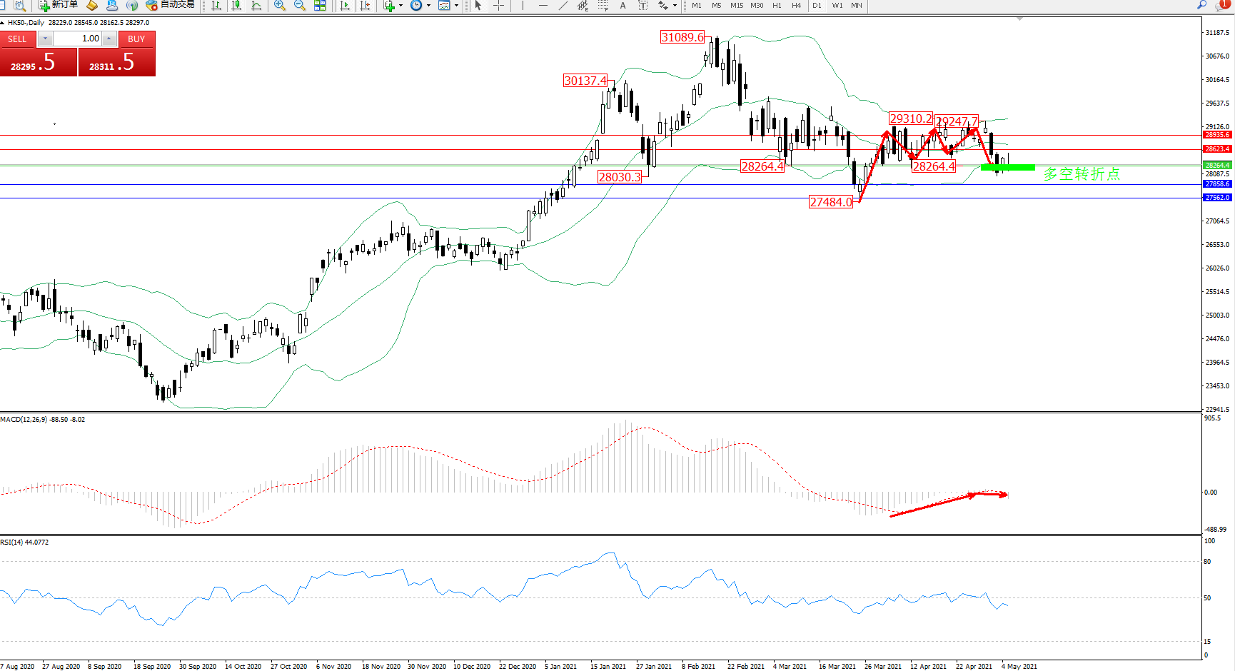 恒指HK50 ——日K线图显示: