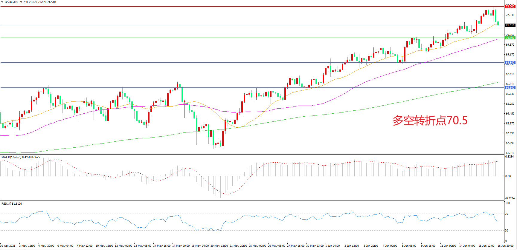 多空转折点:70.50