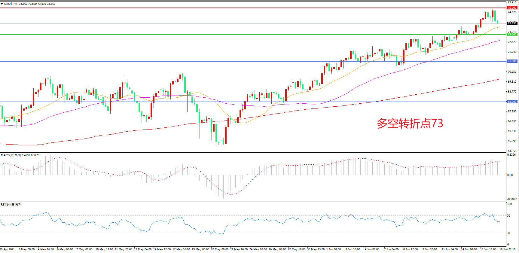 交易策略:在73.00之上看涨,目标75.00    79.00