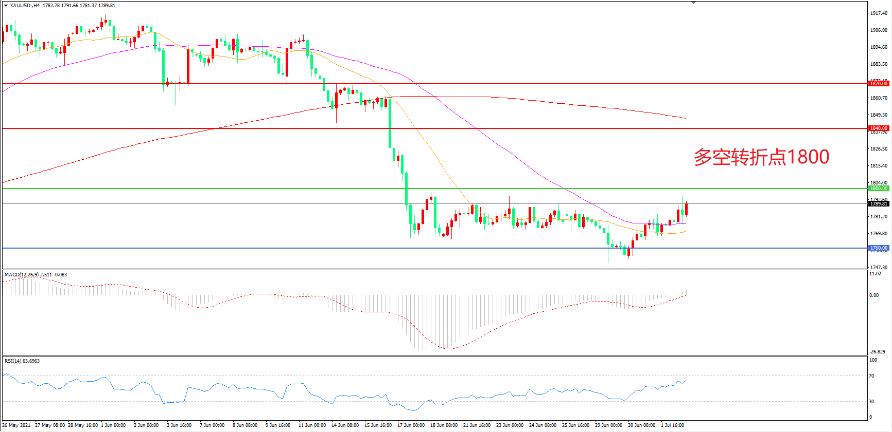 备选策略:在1800.00之上看涨,目标1840.00        1870.00