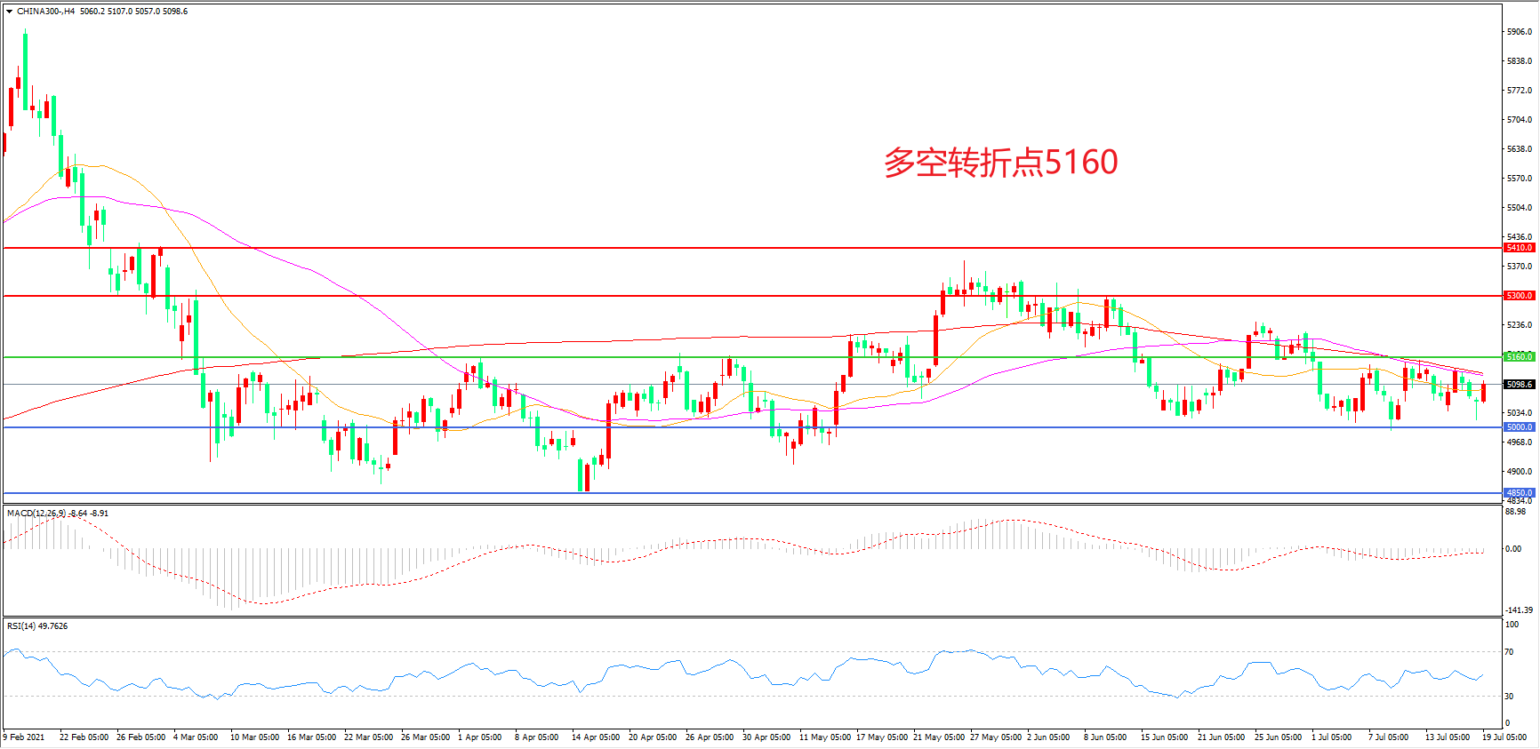 支撑位:5000.00 4850.00