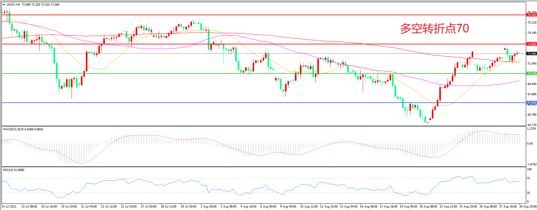 交易策略:在70.00之上看涨,目标73.00                76.00