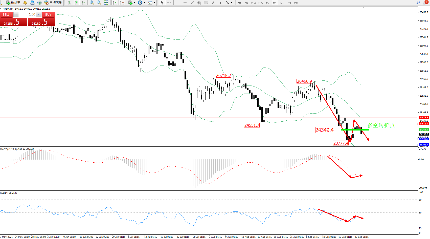 恒指HK50 ——4小时K线图显示: