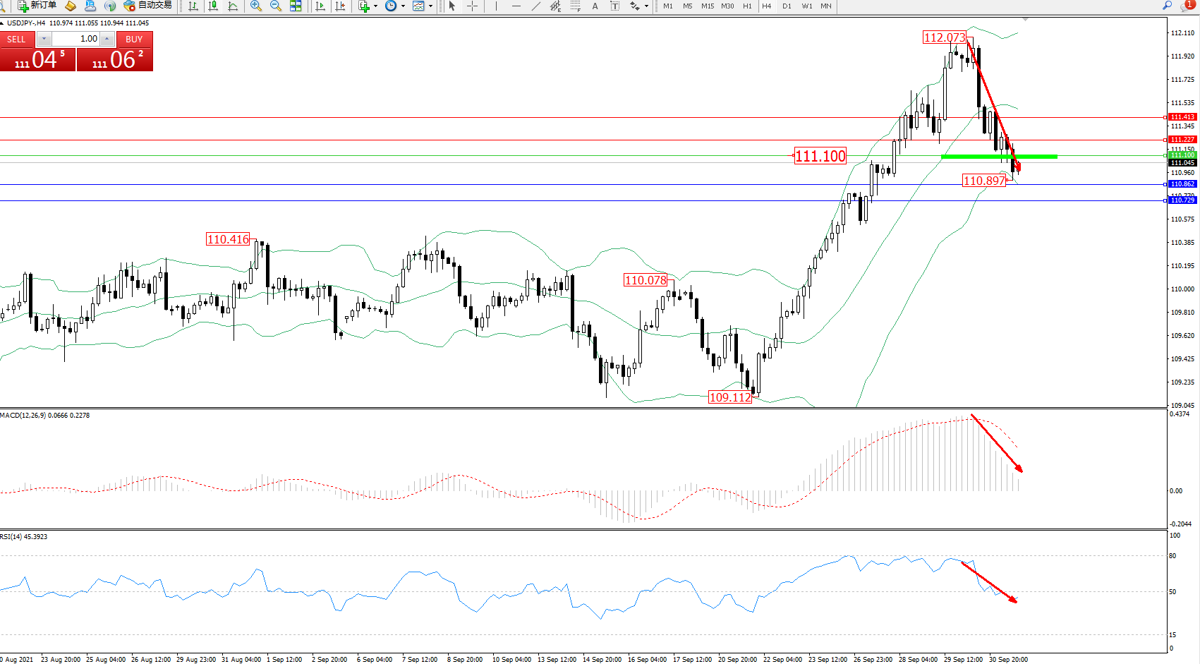 技术点评:高位空头动力急速下挫,触及布林带指标下轨附近节点开始震荡,空头下行态势良好,短期有进一步向下移动态势,布林带指标呈收口走势后开始缓慢张口,MACD指标处于多头区域高位持续震荡下行,RSI指标空头动力持续震荡下行至50均衡线下方整理;