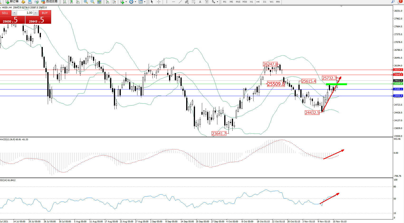 交易策略:25509上方看涨,目标25848、26034