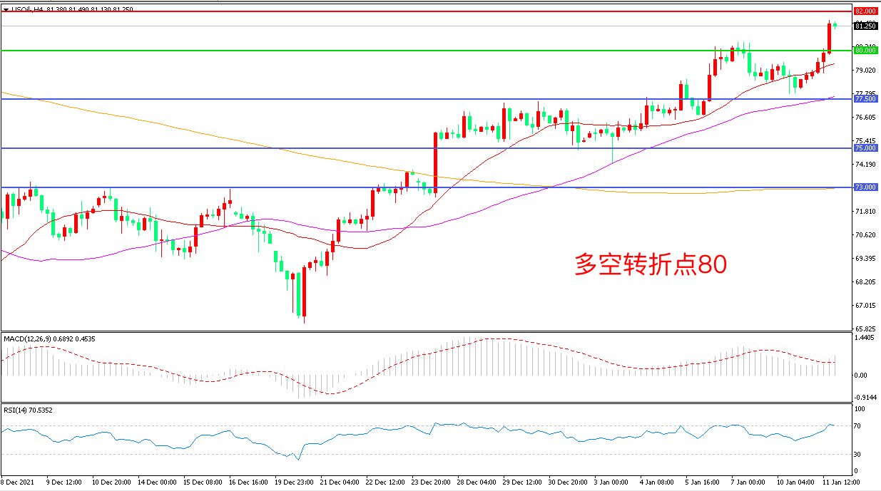 交易策略:在80.00之上看涨,目标82.00        85.00