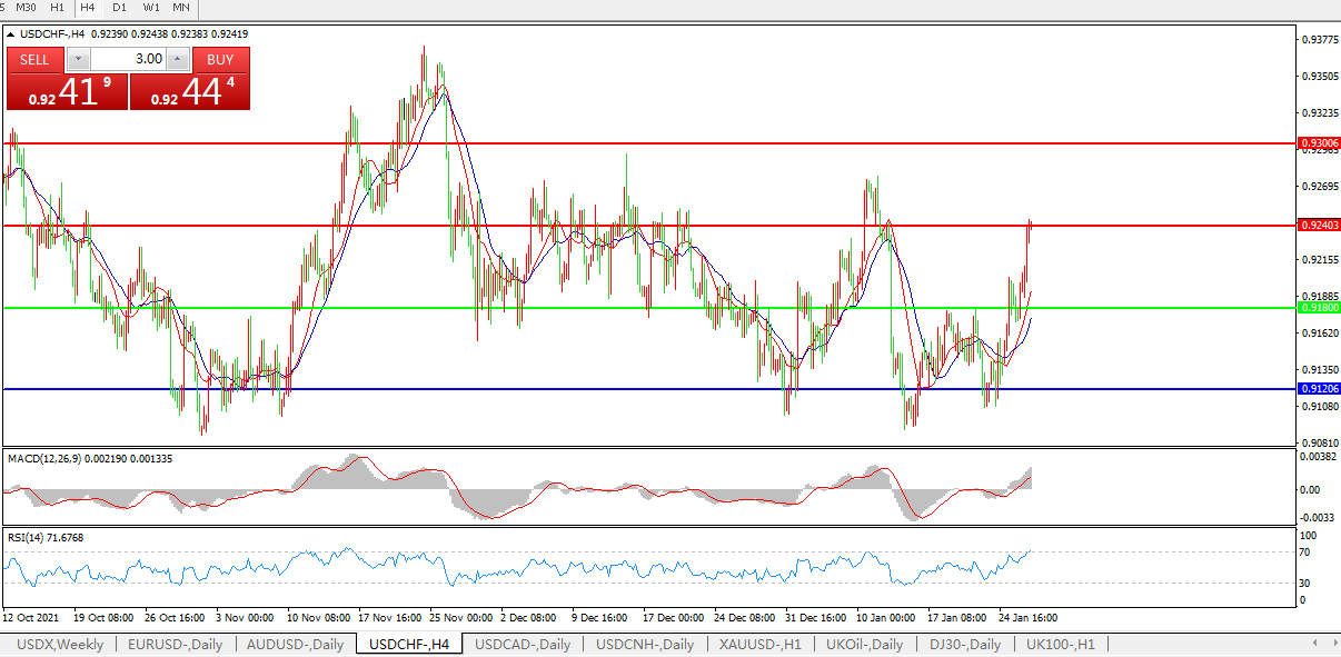 交易策略:0.9180上方看涨,目标0.9270、0.9370