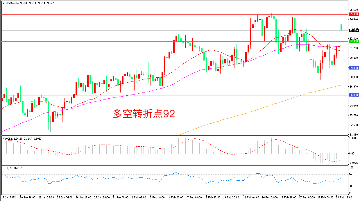 交易策略:在92.00之上看涨,目标95.00 98.00