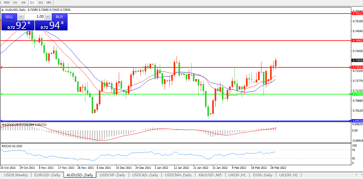 交易策略:0.7100上方看涨,目标0.7250、0.7400