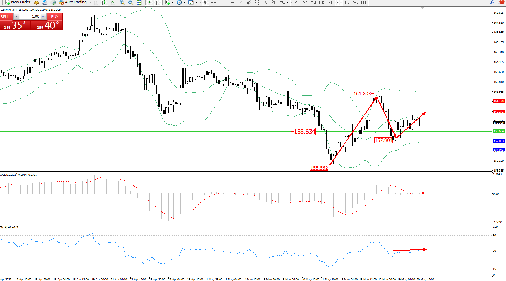 交易策略:158.634上方看涨,目标160.271、161.178