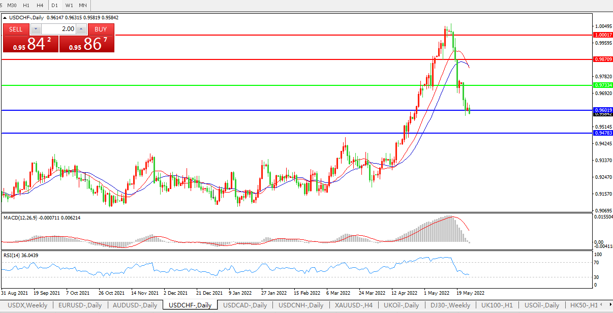 美元兑瑞郎USDCHF 日线图: