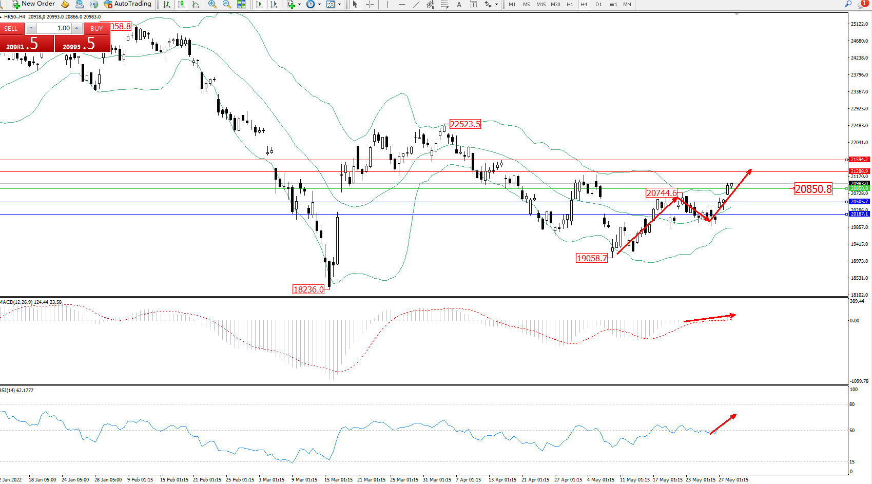 内地疫情持续缓和 恒指重回21000点上方 CHINA300  HK50