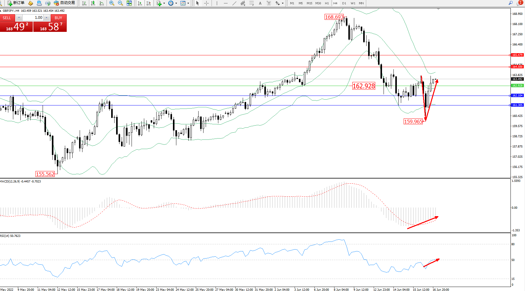 交易策略:162.928上方看涨,目标164.500、165.479