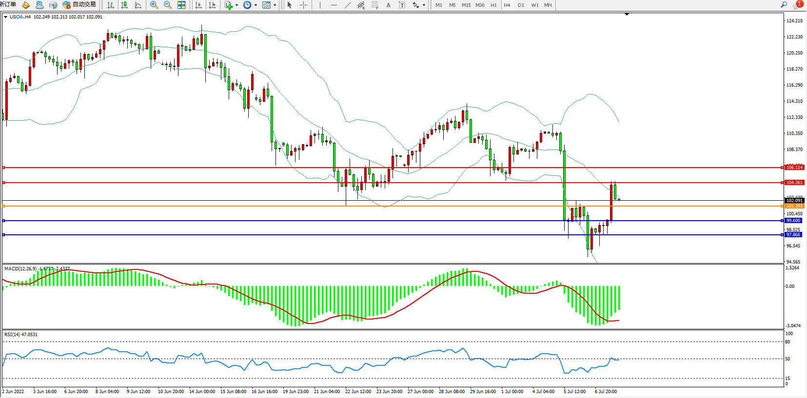 原油USOil——4小时K线图显示: