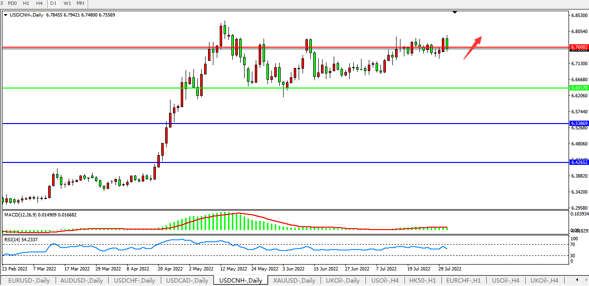 美元人民币USDCNH 日线图: