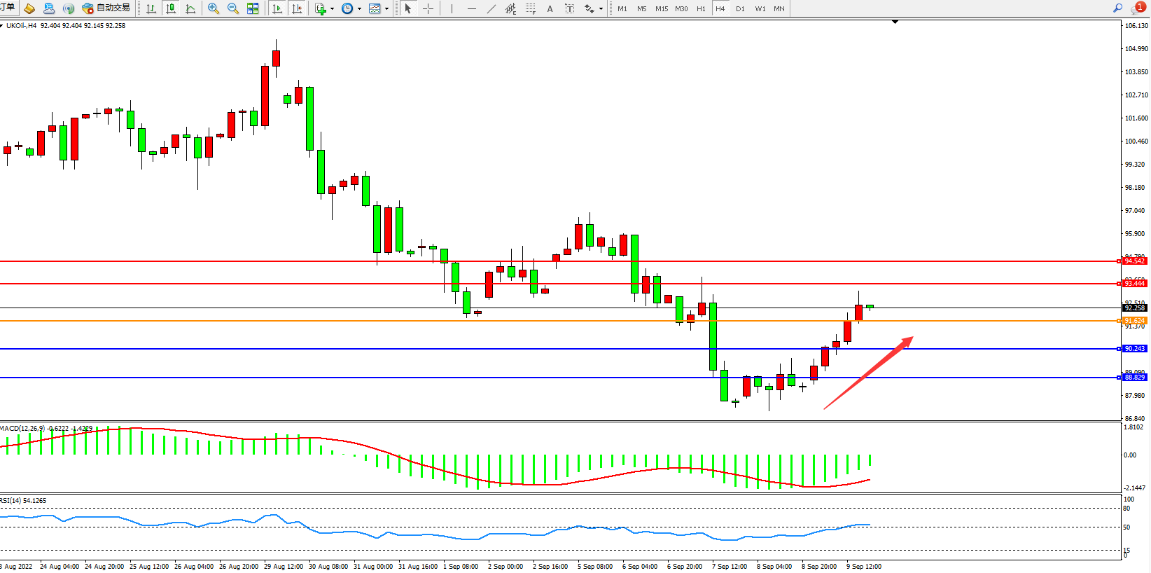布油UKOil——4小时K线图显示: