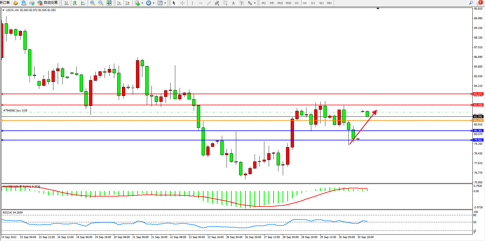 4小时图看:低位短期宽幅震荡,多头动力有伺机入场迹象,MACD指标处于0轴线上側弱势徘徊,RSI指标处于0轴线上側窄幅整理;