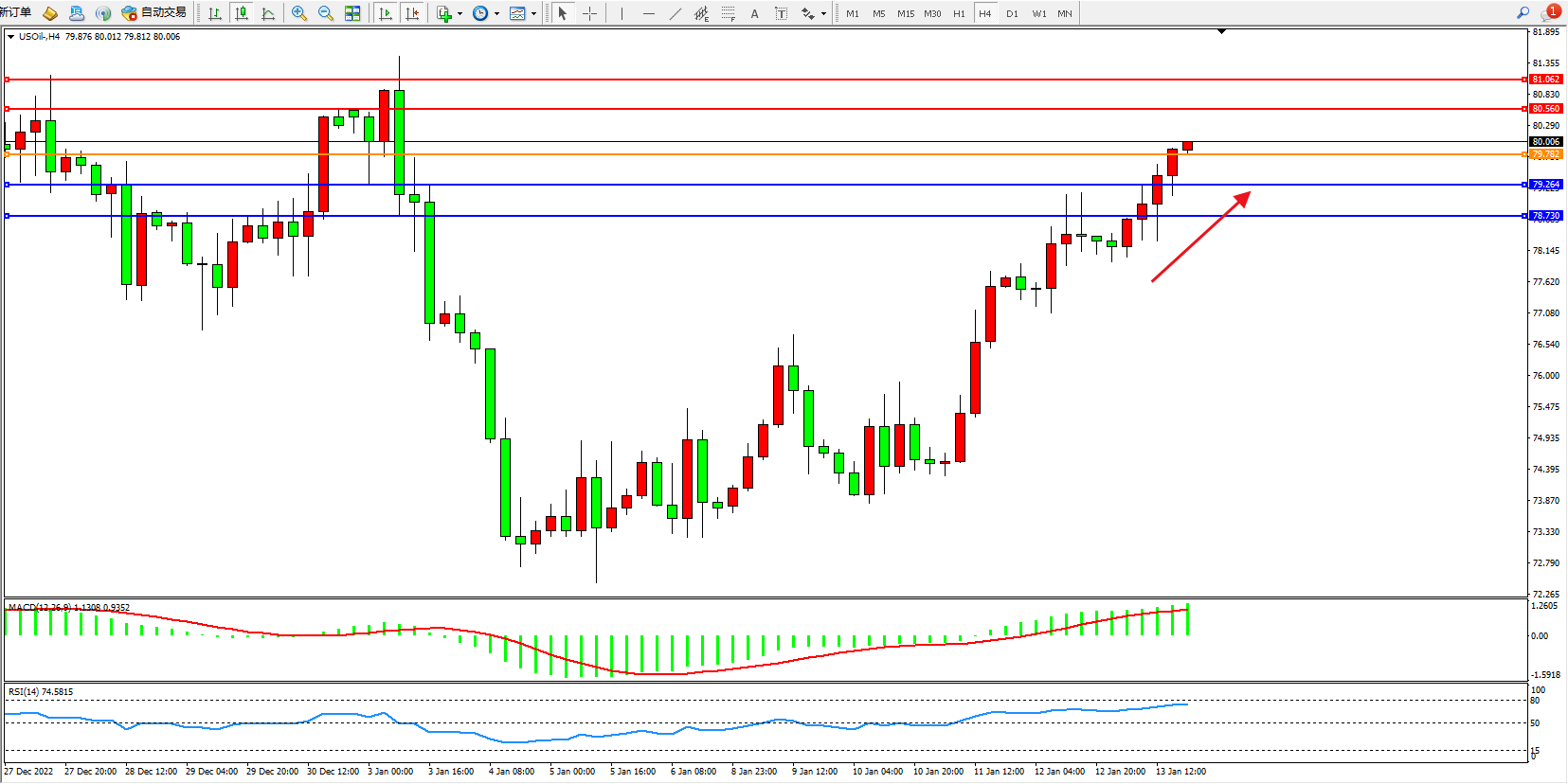 原油维持80.006附近震荡,美国12月通胀年率如期大幅走低,月率出现逾2年半以来的首次萎缩,强化了美联储将放缓加息步伐的预期后,美元跌至近九个月低点也提振了油价。