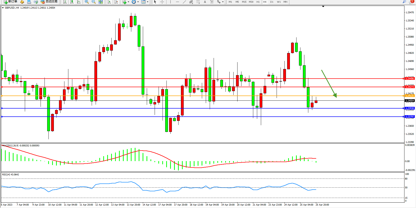 备选策略:1.24131上方看涨,目标1.24273  1.24406