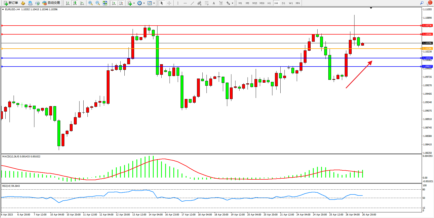 交易策略:1.10286上方看涨,目标1.10566 1.10736