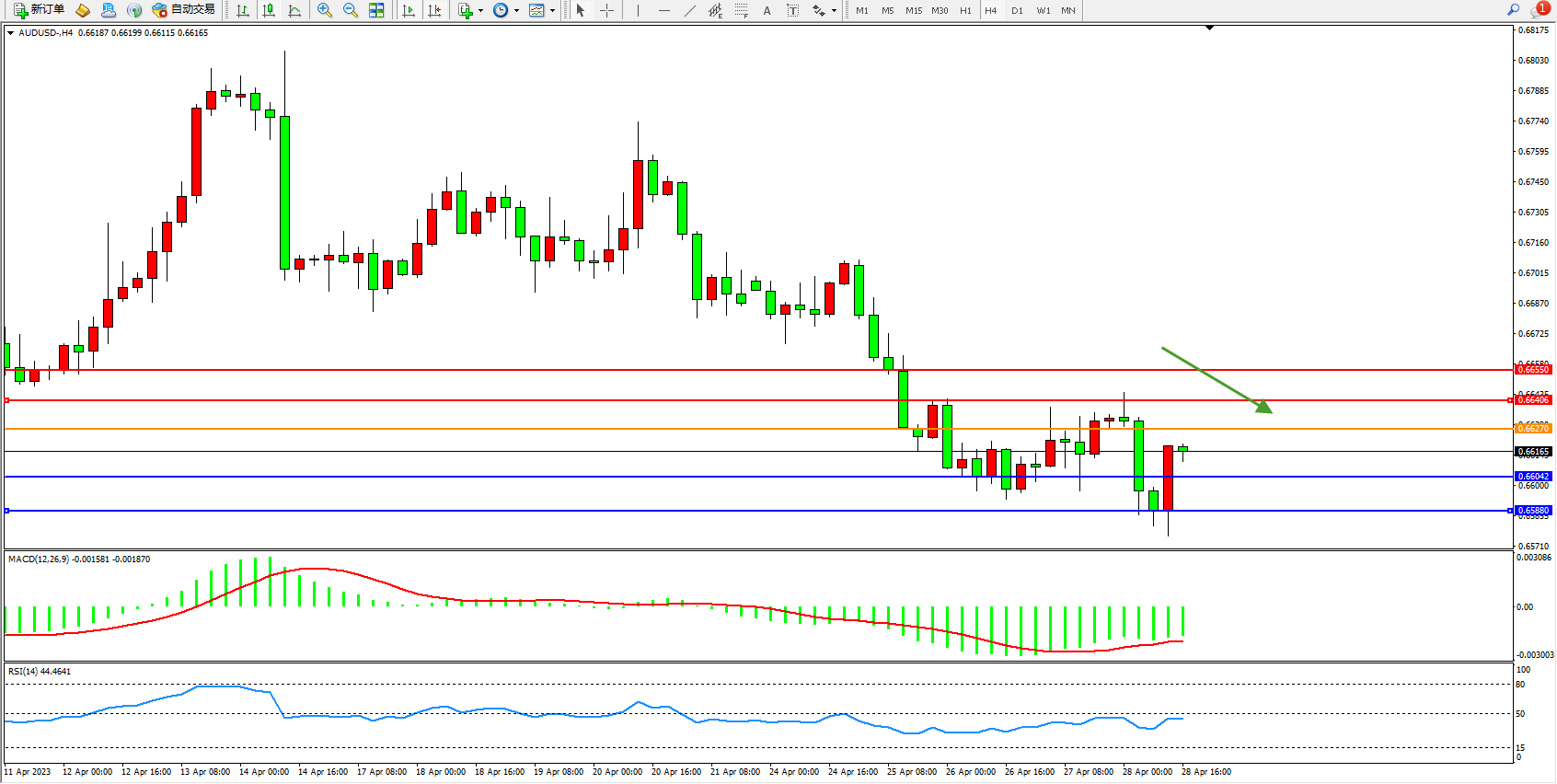 交易策略:0.66270下方看跌,目标0.66042 0.65880