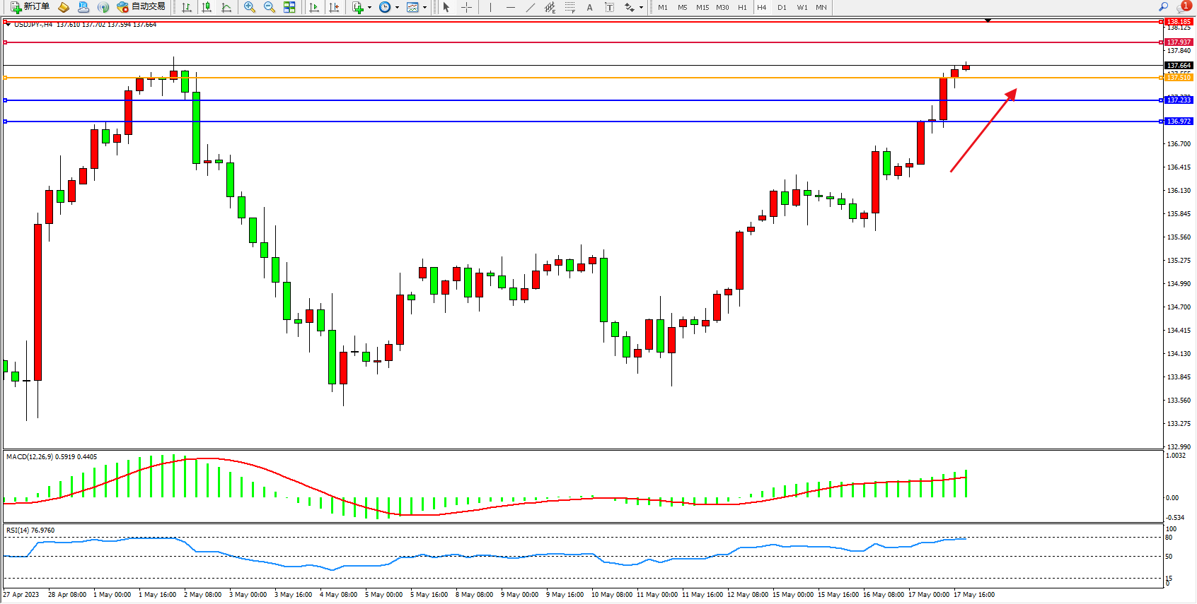 交易策略:137.510上方看涨,目标137.937  138.185