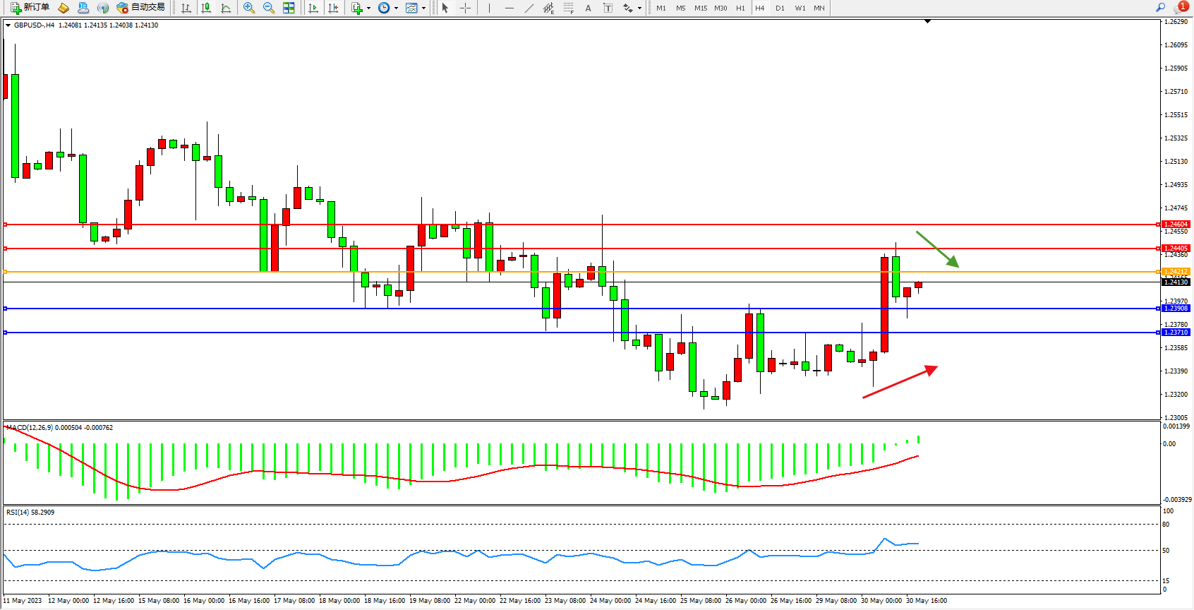 阻力位:1.24405 1.24604