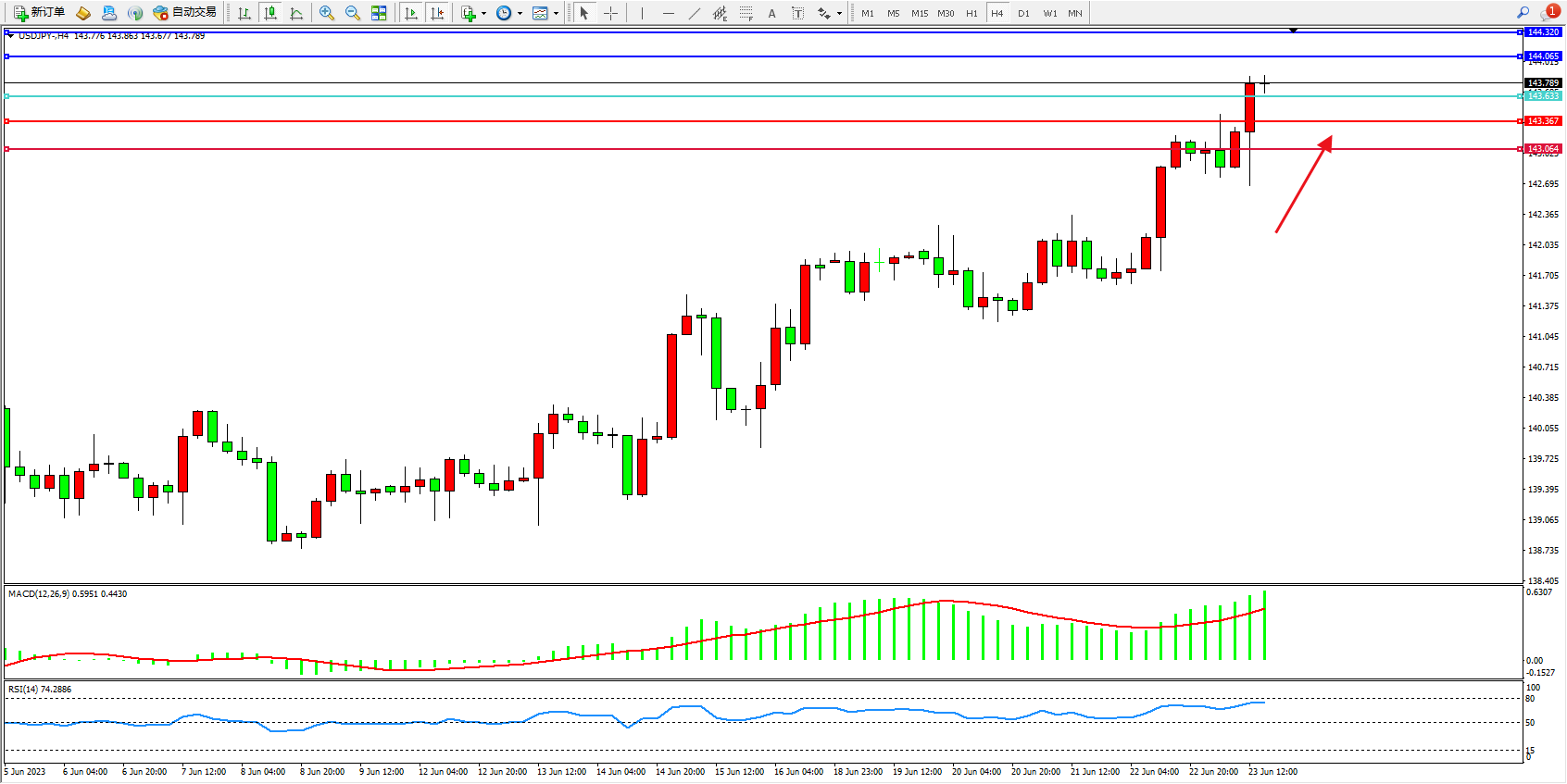 阻力位:144.065  144.320