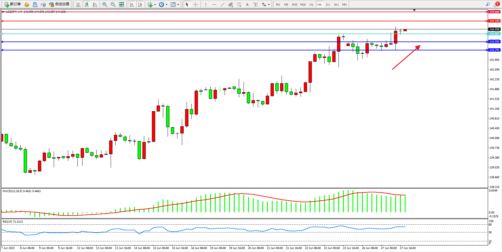 阻力位:144.349 144.684