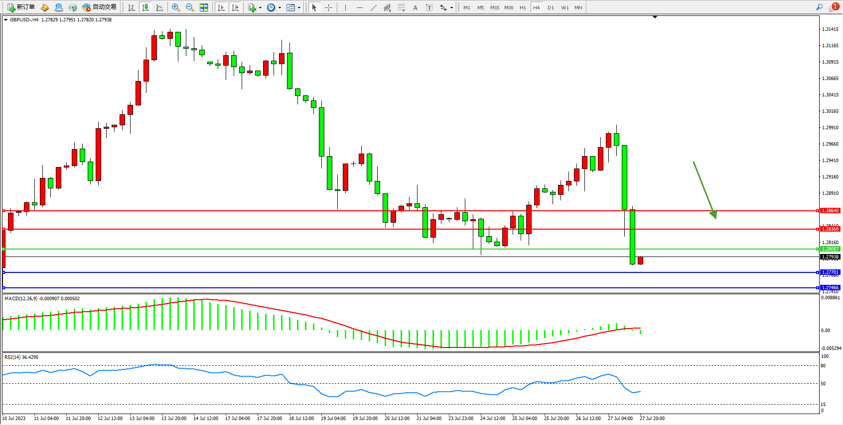 英镑美元GBPUSD ——4小时K线图显示: