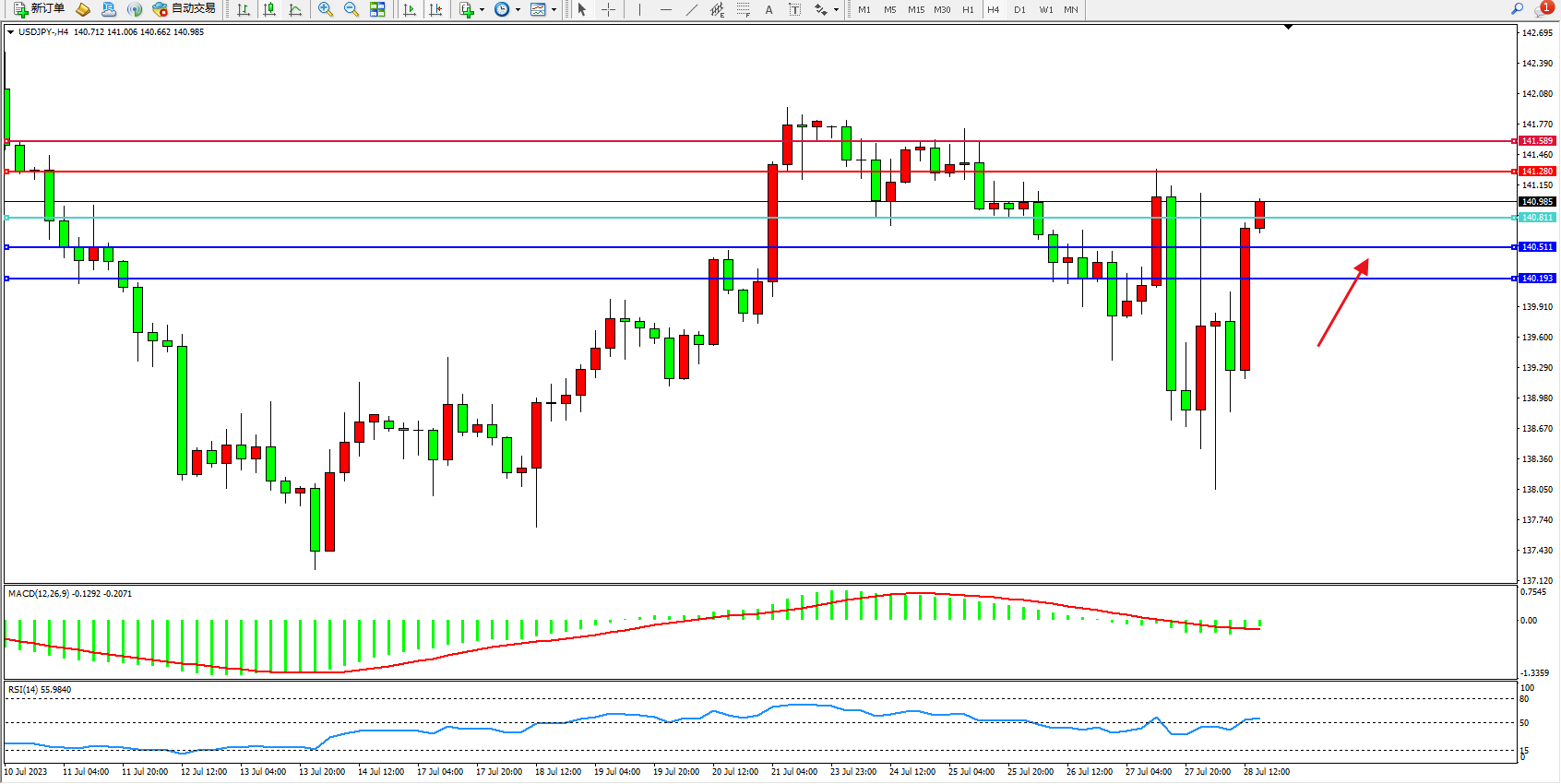 交易策略:140.811上方看涨,目标141.280  141.589