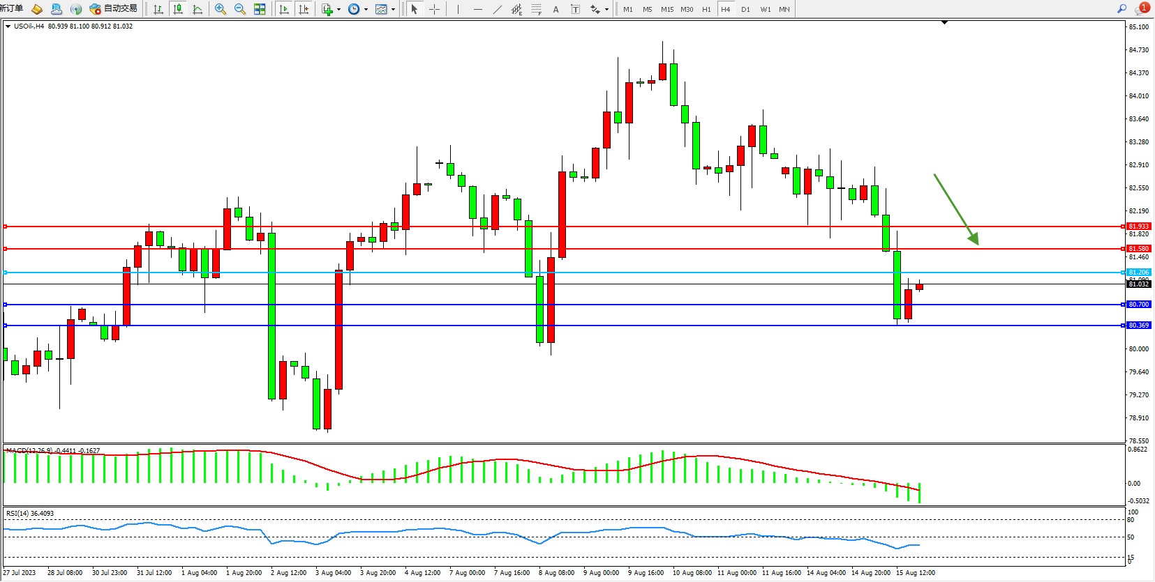 交易策略:81.206下方看跌,目标80.700 80.369
