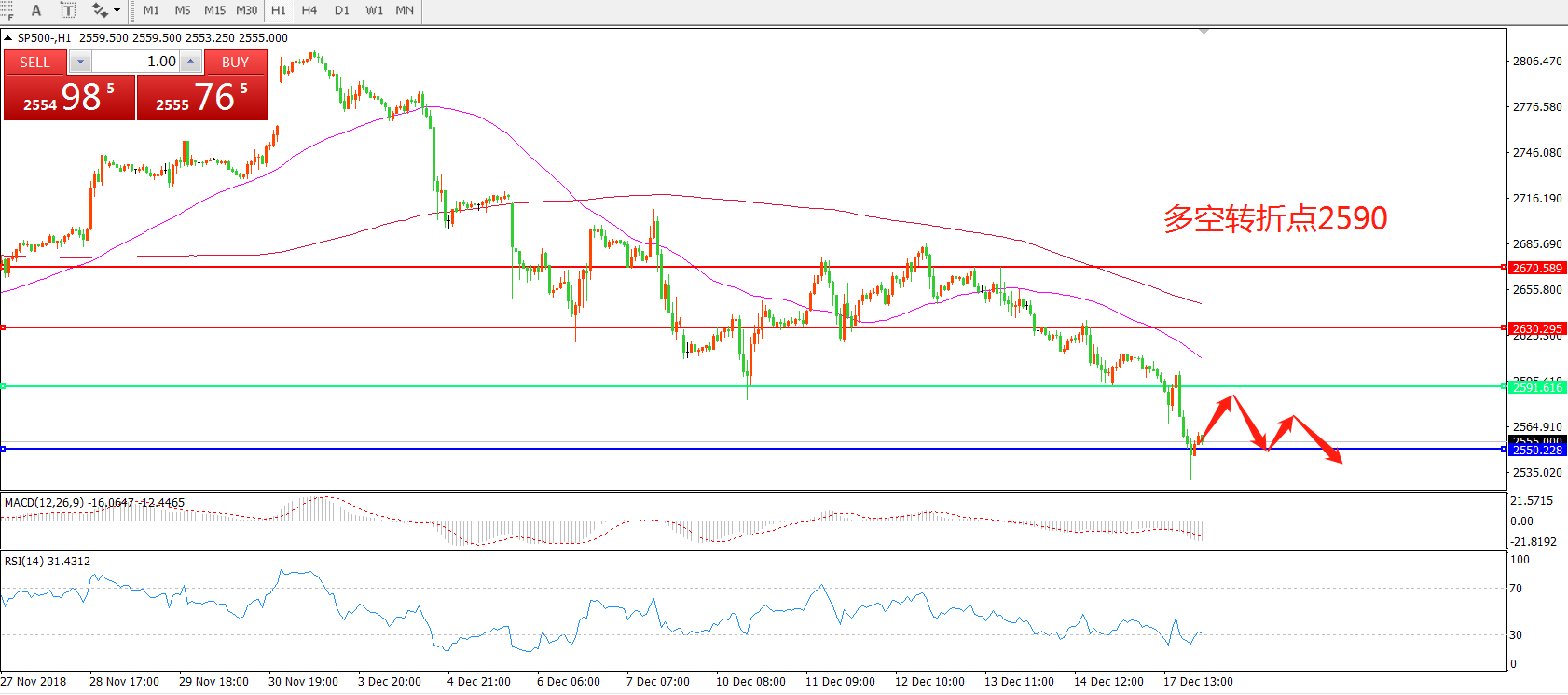 交易策略:在2590之下看跌,目标2550 2500