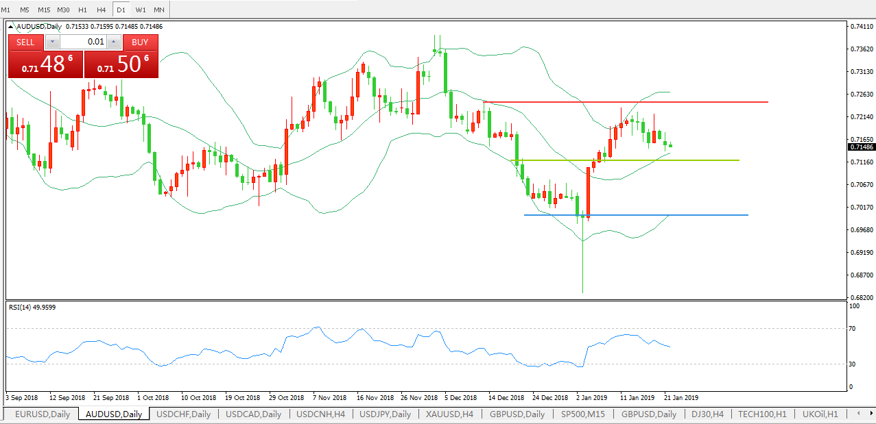 澳元缓慢回踩布林中轨