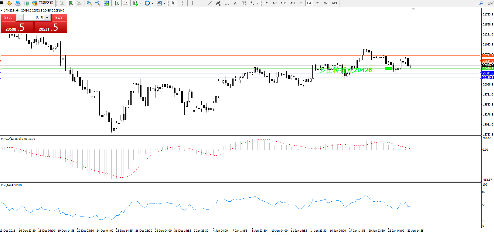 日经指数JPN225——4小时K线图:
