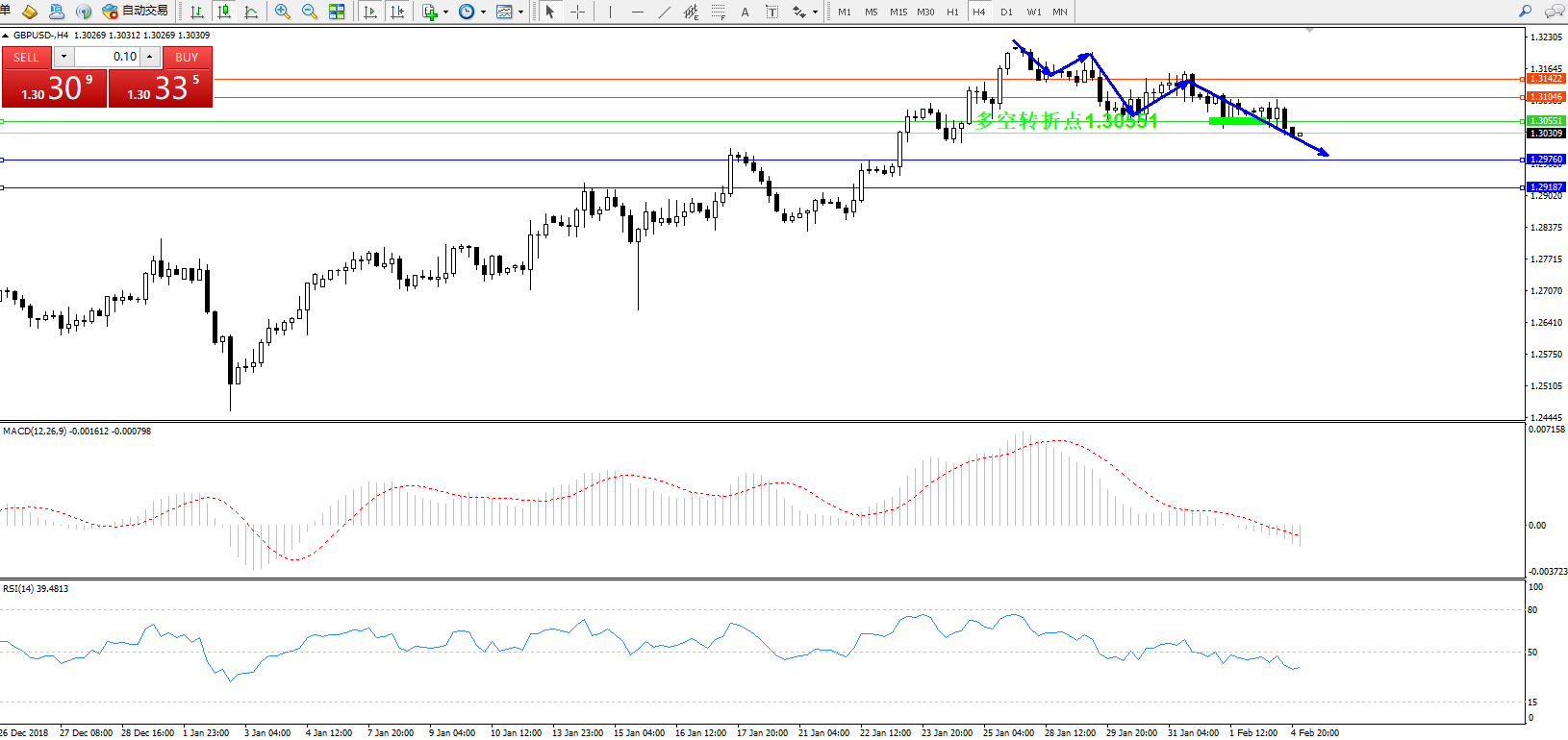 英镑美元GBPUSD ——4小时K线图显示: