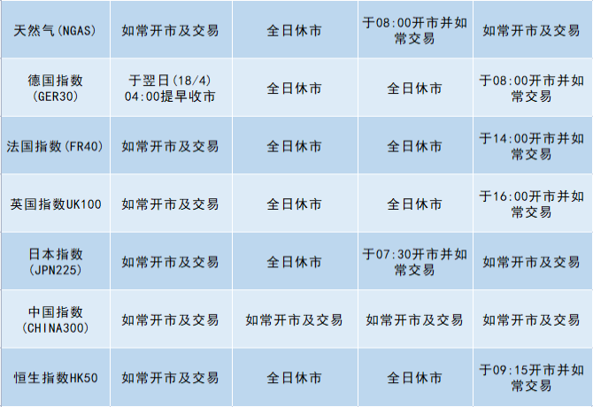 因应2025年4月18日(周五)为美国市场假期(复活节假期),本公司以下产品的交易时间将于假期期间作以下安排,敬请留意。
