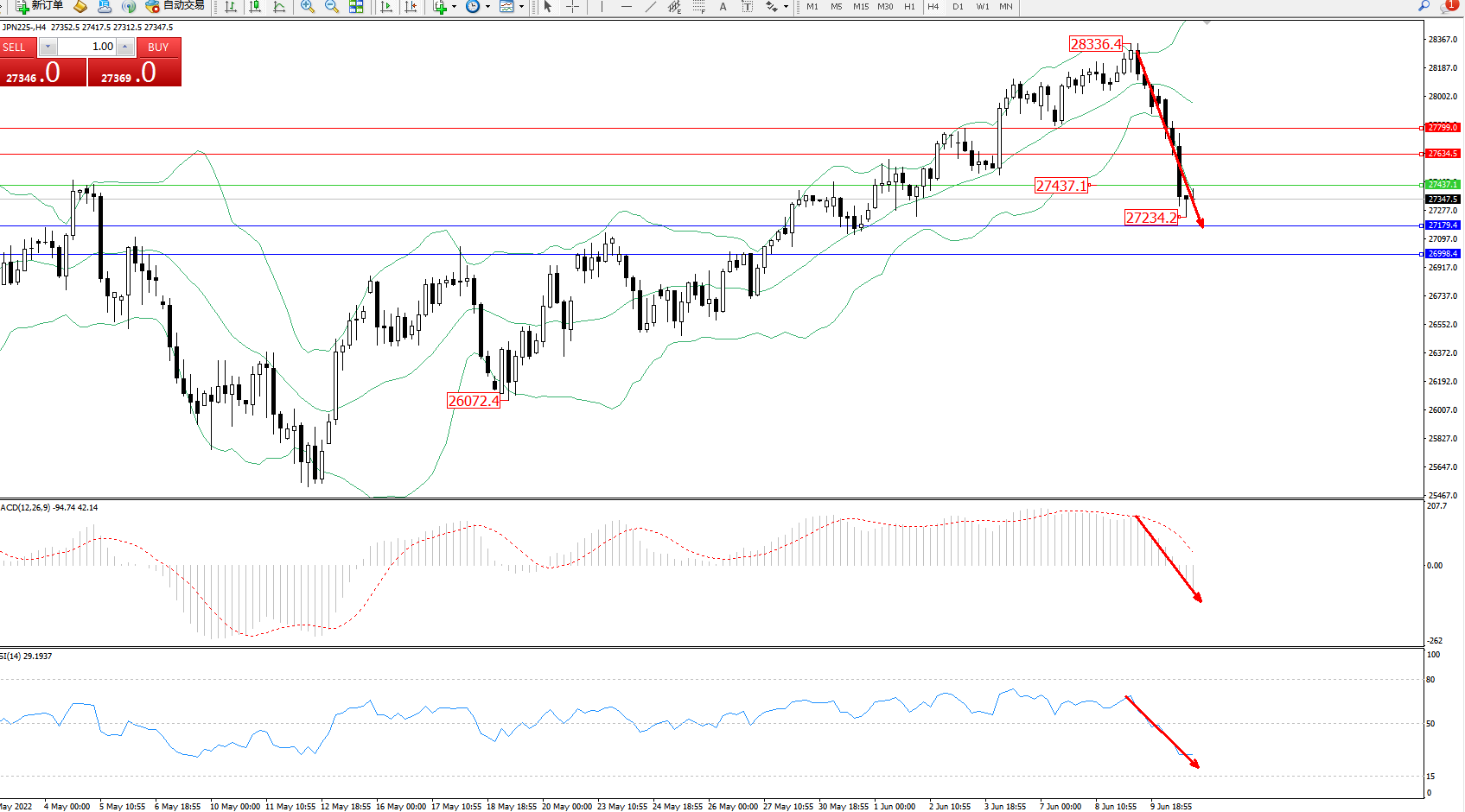 日经225指数6月10日(周五)收盘下跌418.03点,跌幅1.48%,报27828.50点。日本政府将对汇率做出适当反应。将继续紧迫地监测汇率。正在密切关注汇率对经济的影响。