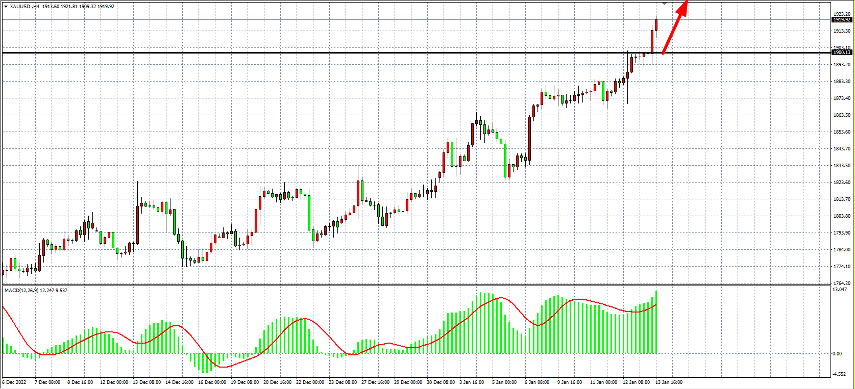 4小时图看,金价在上破1886后加速上涨,一度触及1920之上,同时MACD量能在零轴之上量能加大释放,显示行情有望继续走强,随着1900关口被上破,当前支撑已上移1900,日内在改为之上继续看涨,目标1930-1950附近。