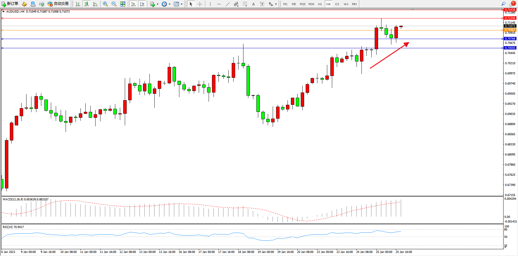 澳元美元AUDUSD——4小时K线图显示: