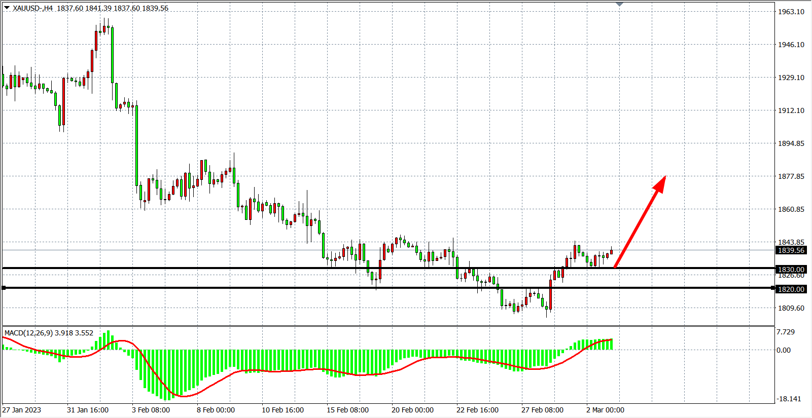 交易策略:在1830.00 之上看涨,目标1850.00 1860.00