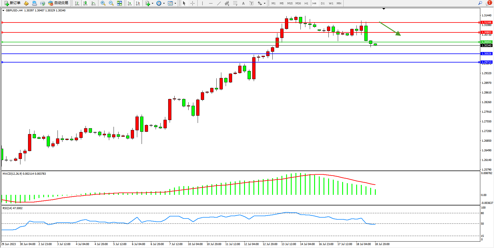 英镑美元GBPUSD ——4小时K线图显示: